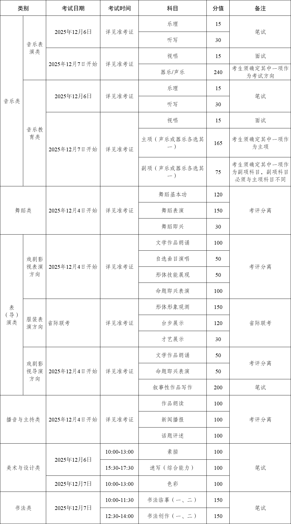 (3)表(导)演类(戏剧影视表演和戏剧影视导演方向):2025年12月4日开始。